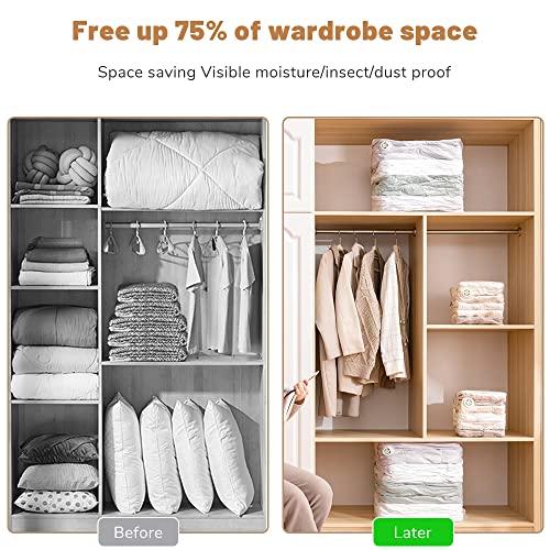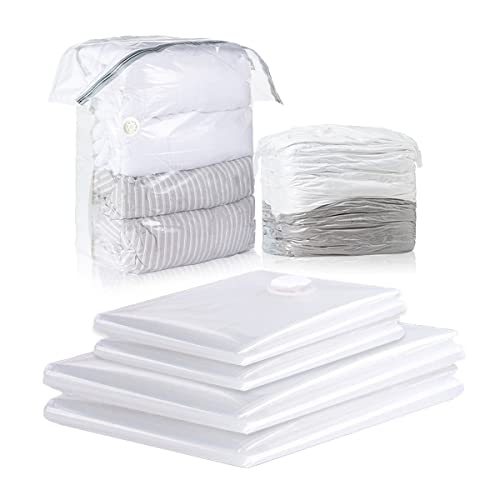 5. 【Sacchi sottovuoto vestiti ultra salvaspazio】 Biancheria da letto salvaspazio, trapunte, trapunte, coperte, cuscini, maglioni, vestiti, borse da 4 pezzi sono perfette per riporre armadio, armadio, trasloco, viaggio d'affari o viaggio, rendendolo più facile organizzare! Le borse sono trasparenti in modo da poter sempre vedere cosa c'è in ogni borsa.