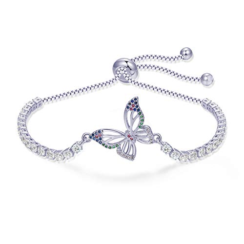 XIYINTA Bracciale Tennis Farfalla per Donna, Braccialetto dell'Amicizia con Catena Placcata in Oro Rosa e Argento Regolabile con Zirconi Cubici (#2 Placcato argento)