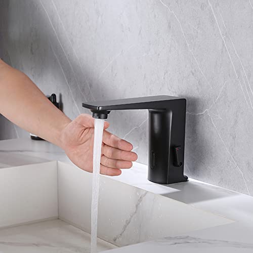XJTNLB Rubinetti Bagno Oro Spazzolato Rubinetto Automatico con Sensore ad Infrarossi, Miscelatore Bagno Mescolatore Automatico Nero