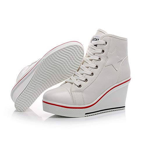 XL_nsxiezi Scarpe Casual da Donna con Tacco Alto, 37, Bianche
