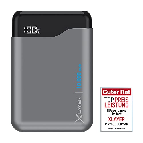 Xlayer Powerbank Micro PRO - Batteria esterna portatile, ricarica rapida, 10.000 mAh, colore: Grigio