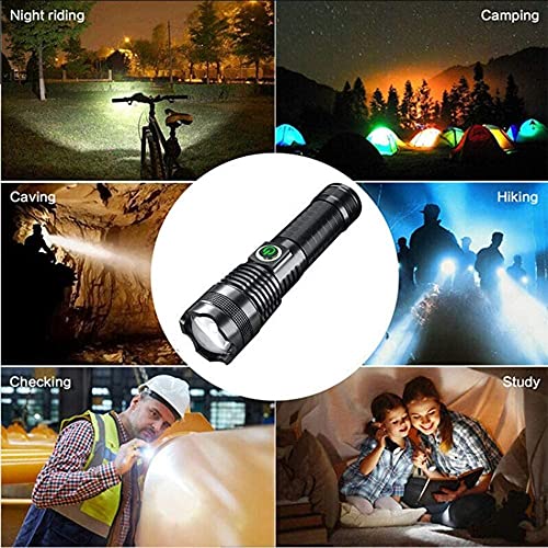 XLENTGEN Torcia LED Ricaricabile,Alta Potente XHP70 Torcia,Tattica Super Luminosa 100000 Lumen Portaibile Zoom Impermeabile Flashlight per Campeggio Caccia Emergenza Lavoro Pesca Emergenza