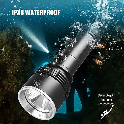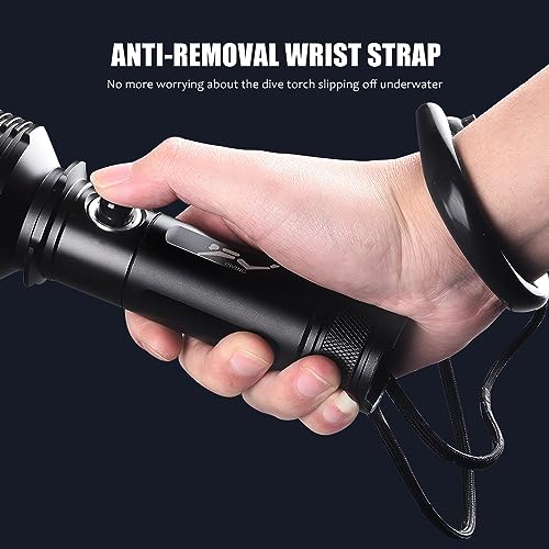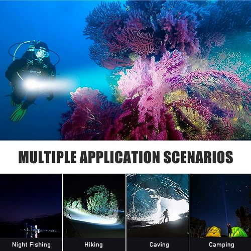 ✅【Torcia Subacquea Professionale】 - Progettata con un triplo anello impermeabile O-ring e un interruttore di alimentazione magnetico, questa torcia subacquea è impermeabile fino a IPX8 e funziona bene fino a 100 metri di profondità. È molto adatta per lavori subacquei, operazioni di pesca subacquea, operazioni di salvataggio, insegnamento delle immersioni subacquee