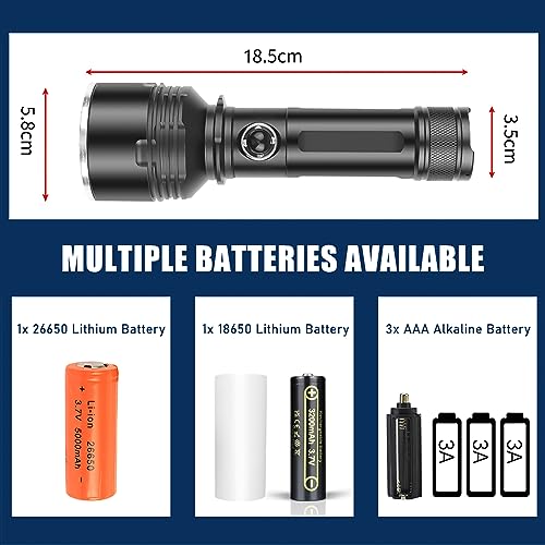 ✅【Affidabile e Pratico】 - La torcia a LED è realizzata in lega di alluminio aerospaziale T6061 con trattamento di ossidazione a tre stadi, il corpo è resistente all'usura e alla corrosione dell'acqua di mare. Il corpo in alluminio ispessito garantisce che la torcia subacquea possa resistere all'alta pressione dell'acqua in acque profonde