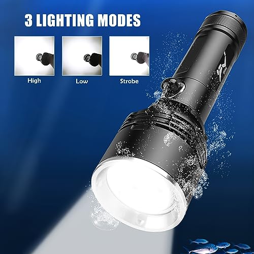 ✅【3 Modalità e Fascio a Lunga Distanza】 - Questa torcia subacquea ha 3 modalità di illuminazione (alta, bassa e stroboscopica) che si possono regolare in base alle condizioni subacquee. La luce subacquea utilizza un riflettore in alluminio ampio e profondo con placcatura liscia sulla parete della coppa, alta efficienza di riflessione e spot perfetto, che può proiettare un fascio di luce fino a 500 metri di distanza