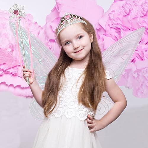 【Set di ali di Elfo】Set di ali di fata da 3 Pezzi, include 1 Pezzi di ali di fata glitterate trasparenti, 1 Pezzi di corona di fata, 1 Pezzi di bacchette di fata.