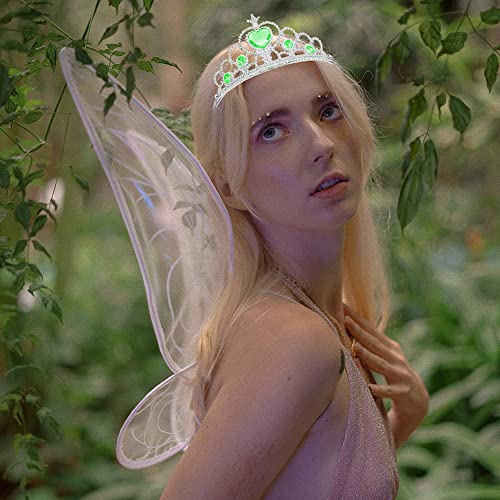 【Set di ali di Elfo】Set di ali di fata da 3 Pezzi, include 1 Pezzi di ali di fata glitterate trasparenti, 1 Pezzi di corona di fata, 1 Pezzi di bacchette di fata.
