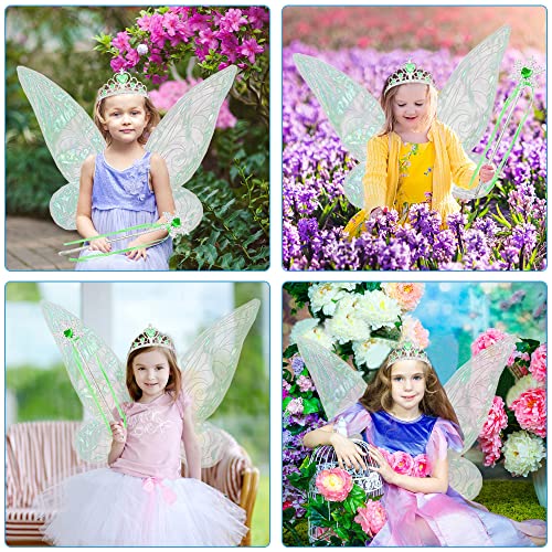 Xlong 3 Pezzi Kit Ali di Fata,Ali di Fata Donna,Ali Fata Bambina,Ali di Farfalla per Bambini,Costume di Halloween da Bambina con Ali di Fata e Farfalla (Verde)