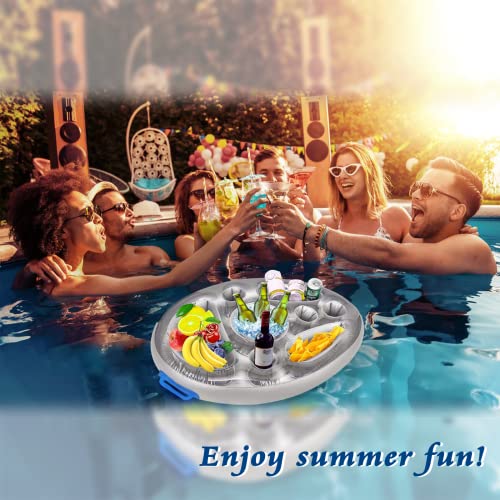 【Full Funzionale】: Portabibite gonfiabile da piscina ha 8 scanalature di diverse specifiche, che possono riporre in sicurezza bevande, snack, libri e telefoni cellulari, in modo da non dover andare avanti e indietro verso la riva, liberare le mani e goditi il tuo tempo libero!