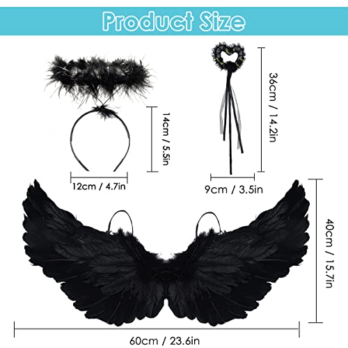 XLZJYIJ Ali d'angelo, Ali d'angelo per Bambini, Ali d'angelo nere, Ali di Piuma con Aureola e Bacchetta, Ali d Angelo Costume per Halloween Karneval, Feste di Cosplay