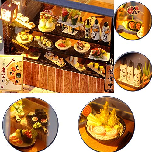 XLZSP - Kit fai da te in miniatura per dolci e sushi, con mobili, a LED, per casa delle bambole, per negozio di strada, per casa delle bambole, modello in legno, per sala creativa (gelato)