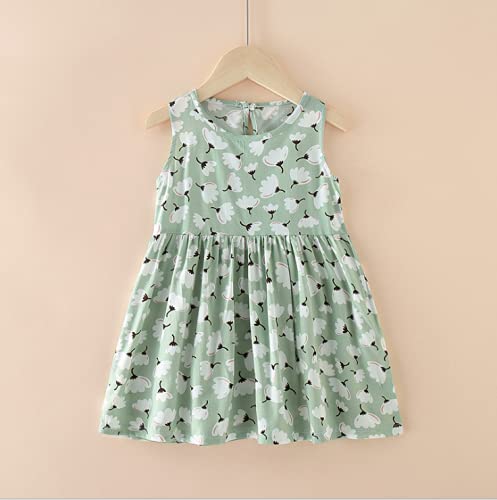 XM-Amigo Bambino Ragazze Estate Toddler Fragola Fiori Bello Abiti Senza Maniche Abito a Fiori Ragazza Abito Casual 6 mesi -10 anni, Verde giallo, 6-8 Anni