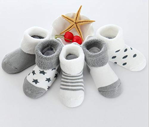 XM-Amigo - Set di 10 paia di calzini per neonati, unisex, morbidi, caldi ed elastici, in spugna di cotone, spessi in autunno e inverno, traspiranti Blu Grigio