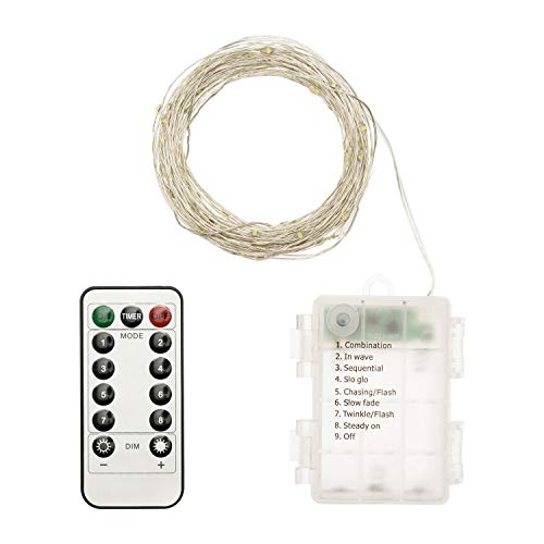 XMASKING Catena 10 m, 100 microled Bianco Freddo, Cavo Metal Argento, Telecomando Multifunzione, Batteria, Esterno