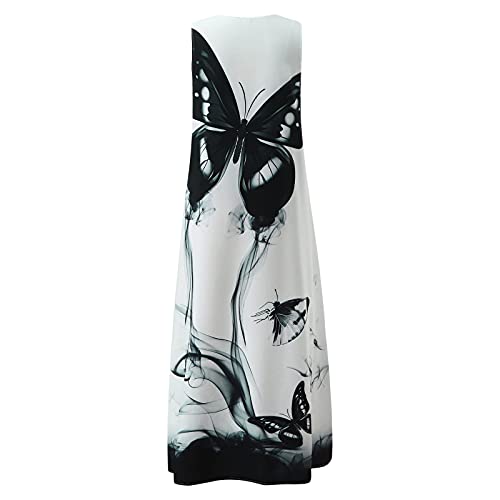 Xmiral Maxi Abito Donna Estate Casual Scollo a V Lungo da Donna con Tasche Abito Lungo da Donna Senza Maniche con Stampa Scollo a V Abito Estivo da Festa con Tasche (XXL,G-Bianco)