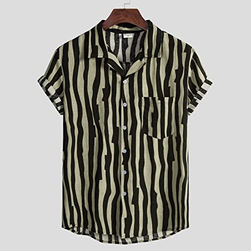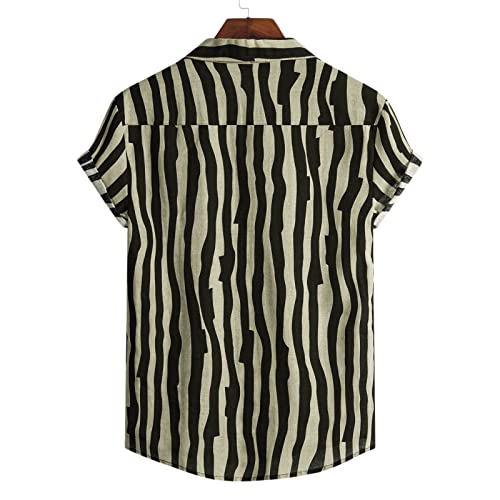 Xmiral Camicia Camicetta Top da Uomo Camicia Casual con Colletto rovesciato a Maniche Corte con Stampa a Righe (L,1nero)