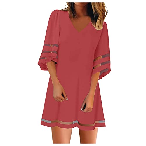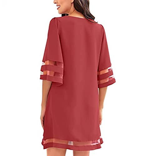 Xmiral Vestiti Donna Gonna Lunga Abiti Casual Maniche Larghe in Mesh Maniche Lunghe Vestiti Donna Corti Vestito Cotone Partito Manica Abito da Spiaggia Camicia (S,Rosso)