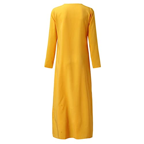 Xmiral Vestito Donna Elegante Vestito Lungo Donna Vestito Donna Vestito Donna Estivo Vestito Cerimonia Donna Vestito Lungo Donna Elegante Vestito Bianco Donna (S,2- Giallo)