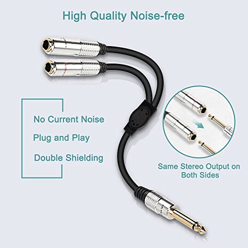 XMSJSIY Cavo splitter a Y per segnale audio da 6,35 mm TS per chitarra, adattatore da 1/4" maschio a doppio adattatore mono da 1/4" femmina con cavo di prolunga per cuffie HiFi TS placcato oro-50cm