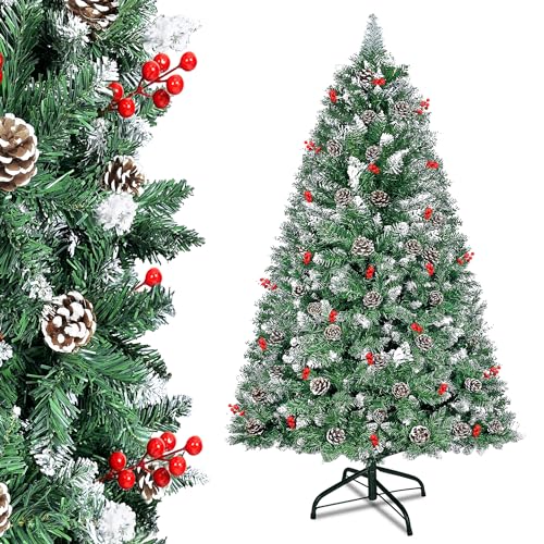 XMTECH Albero di Natale artificiale 180 cm bianco con neve e pigne per decorazione natalizia, con supporto in metallo, legno di pino naturale e innevato