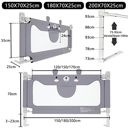 XMTECH Griglia per lettino, 180 cm, per il sollevamento verticale, griglia di protezione del letto, griglia di sicurezza per il letto, protezione da cadute per bambini, neonati e bambini
