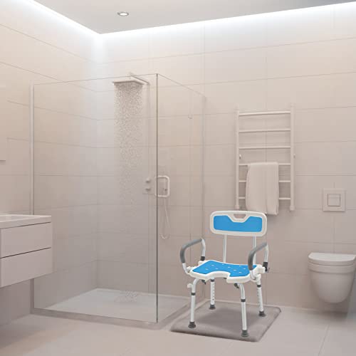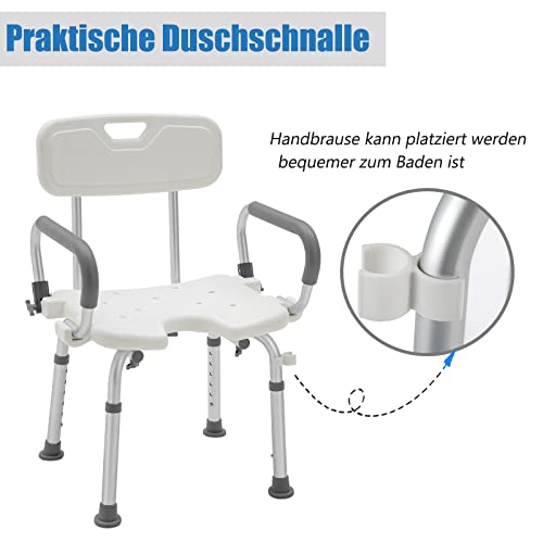 XMTECH Sedia da doccia regolabile in altezza con 6 livelli, 37,5 - 50 cm, sgabello da bagno per anziani, con schienale, braccioli e imbottitura per seduta Eva e schienale, 150 kg