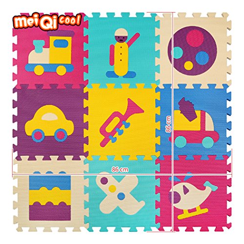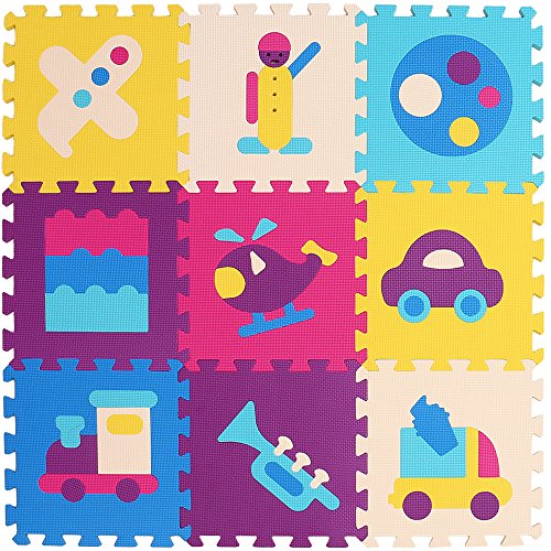 XMTMMD Tappeto Gioco Puzzle - Pezzi di Puzzle a Incastro Che Promuovono Lo Sviluppo Sensoriale Visivo - Tappeto Morbido da Bambino - 9 Mattonelle Tappeto Eva - Non Tossico AM24G
