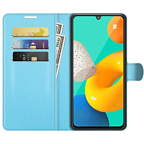 XMTON Custodia Compatibile con Samsung Galaxy M32 6.4",Premio PU Custodia in Pelle con Wallet,Magnete,Slot per Schede Case Cover per Samsung Galaxy M32 Smartphone (Blu)