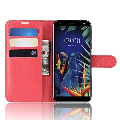 XMTON LG K40,LG K12 Plus,LG K12+ 5.7" Custodia,Premio PU Custodia in Pelle con Wallet,Magnete,Slot per Schede Case Cover per LG K40,LG K12 Plus,LG K12+ Smartphone (Rosso)