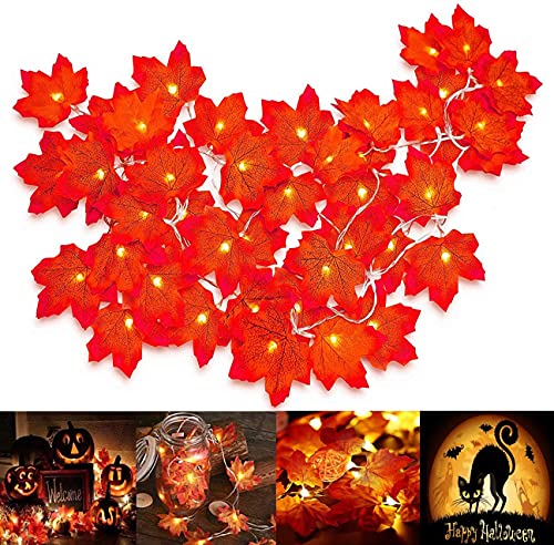 Luci a foglie autunnali - La nostra ghirlanda in acero da 4 m con 40 luci a LED in foglia d'acero per decorazioni di Halloween per interni ed esterni.