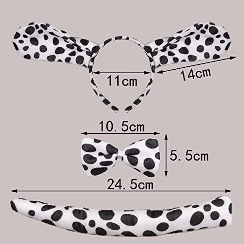 Confezione: la tuta contiene tre decorazioni in stile dalmata, vale a dire fascia per capelli, papillon e coda. La loro modellazione è bella e realistica, l'effetto decorativo è molto buono e sono adatti per adulti e bambini per cosplay.