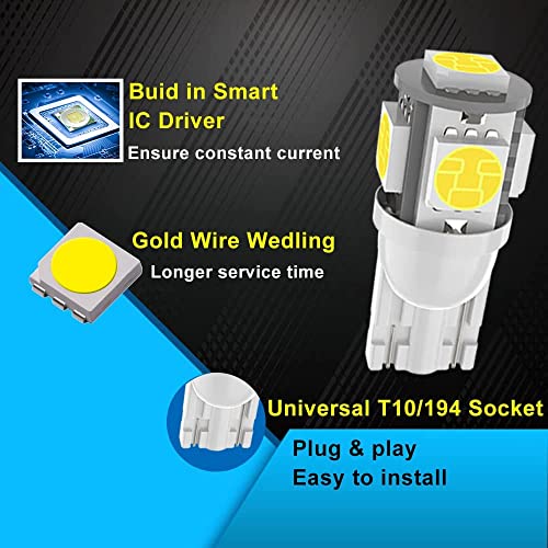 Xnourney 10PCS T10 194 168 Led Lampadina Auto 6000K Luce Bianca, Aggiornamento 5 SMD 5050 Chipset 2825 W5W 175 158 LED Luce per Mappa Cupola Porta di Cortesia Targa Luce di Indicatore Laterale T10 Led