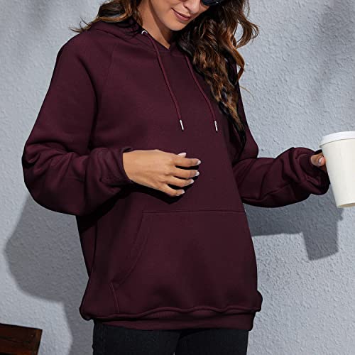 Xnova Felpa con Cappuccio Donna Tinta Unita, Sweatshirt Hoodie con Tasca Invernale, Pullover Pile Interno Caldo Maniche Lunghe per Lavorando Shopping Dormire (Rosso, XL)
