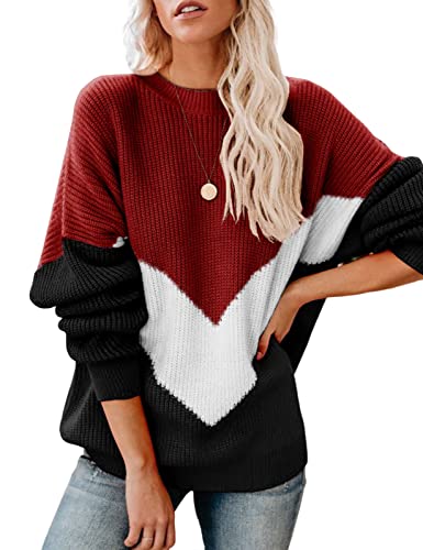 ➤ Maglione da donna con scollo tondo a righe: questo maglione di base in stile ampio è un capo di moda di successo dal 2022 al 2023, con caratteristiche di design a blocchi di colore, girocollo, strisce a forma di V, dettagli a coste sull'orlo, stile lavorato a maglia.