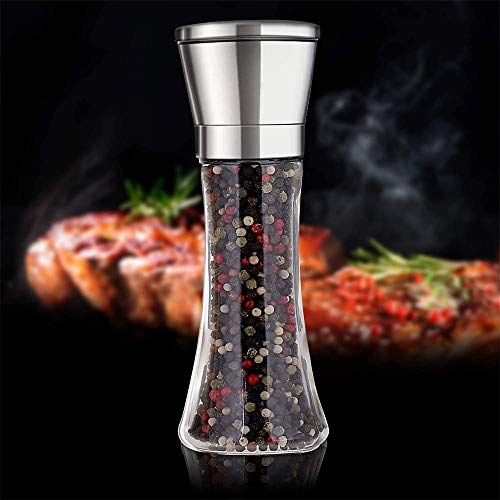 Xnuoyo Macina Sale E Pepe, Saliera In Acciaio Inossidabile Con Spessore Della Polvere Regolabile Manualmente, Portapepe In Vetro Trasparente Visibile, Serbatoio Per Condimenti Da Cucina size:20cm*7cm