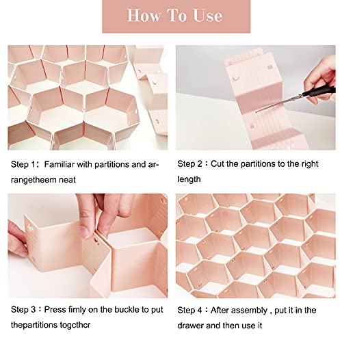 Xnuoyo nuoyo Separatore a Nido D'Ape, Divisorio per Divisori a Nido D'Ape con Cassetti Regolabili, Divisori per Cassetti, per Biancheria Intima, Sciarpe, Cravatte, Cinture, Vestiti per Bambini (Rosa)