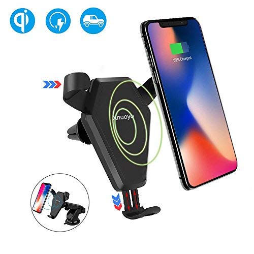 Xnuoyo Wireless Auto Caricabatterie Qi 10W Caricabatterie Wireless Air Vent Mount Supporto per Samsung Note 8/ S8/ S8+/ S7/ S7 Edge/ S6 Edge+/ Note 5, Standard Ricarica per iPhone X/ 8/8 Plus