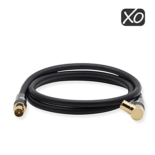 XO-Cavo coassiale aereo 5m di maschio a maschio corazzato TV/AV con 90 gradi di angolo retto conettore placcato in oro e collegamento di metalo per televisori UHF/RF, videoregistratori, lettori DVD,DVR,decoder di cavo e satelite -Nero.