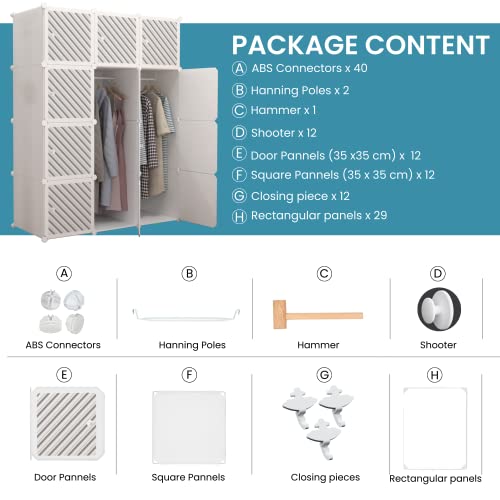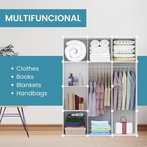 XOKOTAKI Armadio Componibile, Scaffalatura Modulare, Armadio Componibile Porta Abiti per Casa, Scaffale Portaoggetti per Camera da Letto, 12 Moduli, 2 Barre, 140x105 cm, Colore Bianco