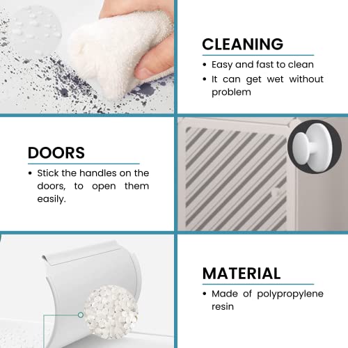 Resistente e durevole: è impermeabile, facile da pulire e realizzato con un materiale in resina di polipropilene resistente e impermeabile. Ogni porta ha una maniglia per aprirsi senza il rischio di intrappolare le dita.