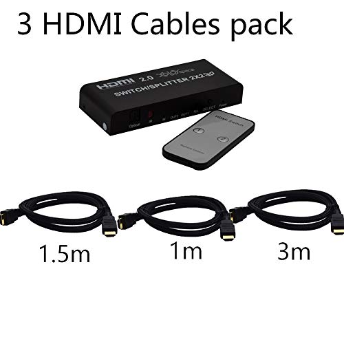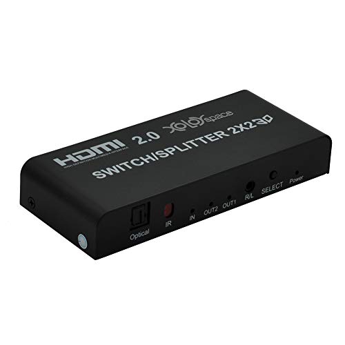 XOLORspace 41221 2x2 4K 60HZ HDR 2x2 HDMI switch splitter con downscaler automatico uscita simultaneamente 4K 60HZ 4:4:4 HDR e 1080p 60HZ Audio ottico e uscita audio auricolare da 3,5 mm (3 cavi HDMI)