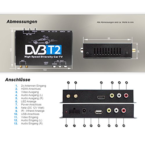 TV Full HD (H. 265 HEVC). Dual DVB - T - sintonizzatore incl. 2 antenne attive, ciascuno con 20 dB. Ricevere fino a 160 km / h.