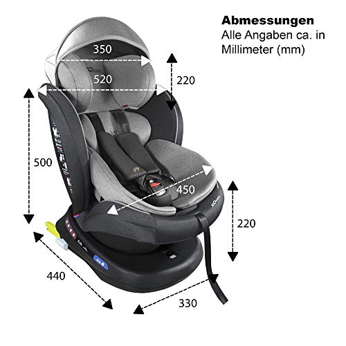 XOMAX S64 Seggiolino per Bambini con 360° Funzione di Rotazione e ISOFIX I 0-36 kg, 0-12 Anni, Gruppo 0/1/2/3 I Cintura a 5 Punti e 3 Punti I Rivestimento sfoderabile e Lavabile I ECE R44/04