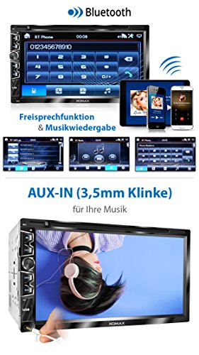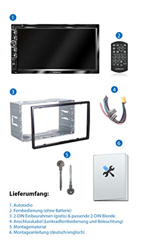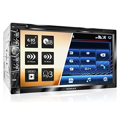 XOMAX XM-2D6904 Autoradio con Schermo Touch Screen da 17,7 cm / 6,9" I Bluetooth Vivavoce I DVD, CD, 2x USB, SD, AUX I Connessioni per retrocamera e telecomando al volante I 2 DIN