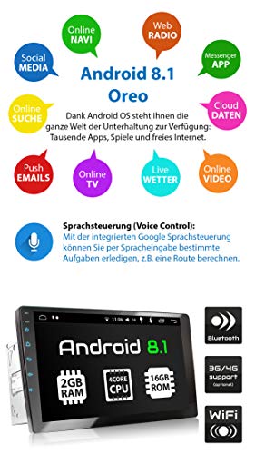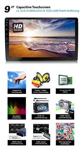 XOMAX XM-2VA901 Autoradio con Android 8.1 I Quad Core, 2GB RAM, 16GB ROM I Navigatore GPS I Supporto WIFI, 4G, DAB, OBD2 I Bluetooth I XXL Touch Screen 9'' I 2x USB, RDS I 2 DIN