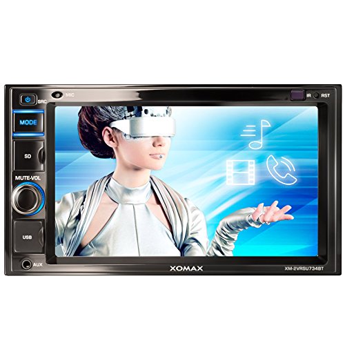 XOMAX XM-2VRSU734BT Autoradio con Bluetooth vivavoce e riproduzione musicale + schermo touchscreen 6,2" / 16 cm + 2x Porta USB & Slot Micro SD/SDHC (entrambe fino a 128 GB!) per MP3, WMA, AVI, etc. + LED Colori: blu + Entrata AUX IN + Ingresso per telecamera posteriore + Dimensioni standard doppio DIN / 2 DIN + Telecomando e cornice metallica esterna inclusi