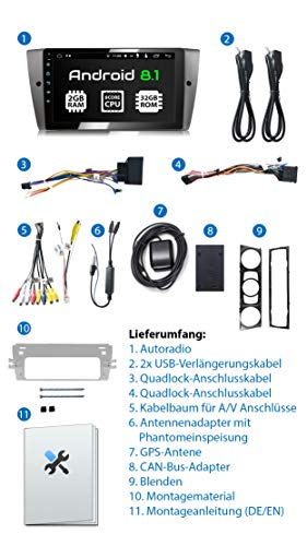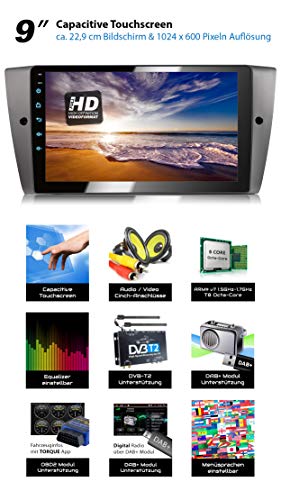 XOMAX XM-90BA Autoradio con Android 8.1 adatto per 3er BMW I 8 Core, 2GB RAM, 32GB ROM I Navigatore GPS I Supporto WIFI, 4G, DAB, OBD2 I Bluetooth I Touch Screen 9'' I USB, RDS