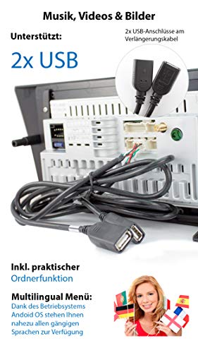 Funzione vivavoce Bluetooth con importazione rubrica telefonica e riproduzione musicale a distanza dal vostro dispositivo Bluetooth tramite A2DP + 2x Porta USB, 32GB ROM per MP3, WMA, MPEG4, JPEG, ecc.