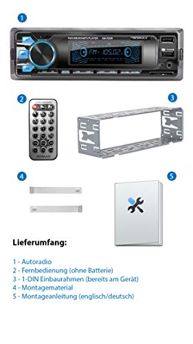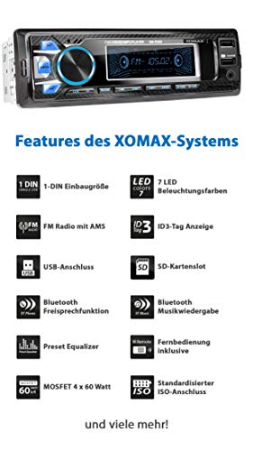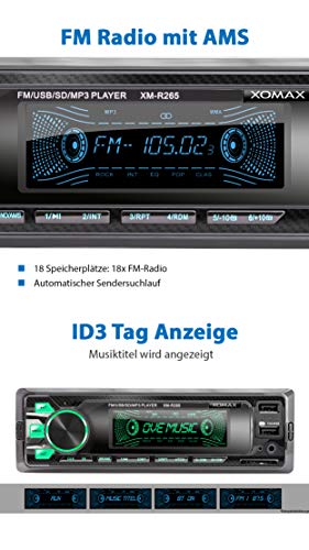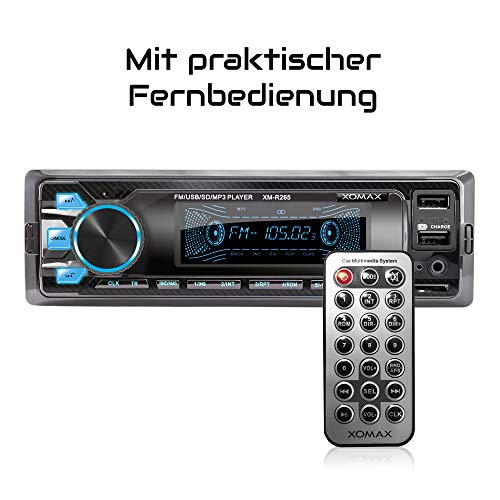 XOMAX XM-R265 Autoradio con Bluetooth I Ricarica cellulare tramite la 2a porta USB I Ottica in carbonio I RDS I 7 LED colori, USB, SD, MP3, AUX, 1 DIN