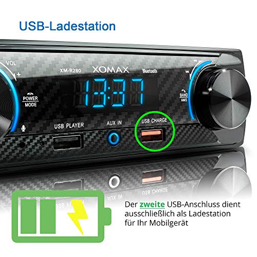 XOMAX XM-R280 Autoradio con FM, vivavoce Bluetooth, USB, MP3, AUX-IN, 1 DIN